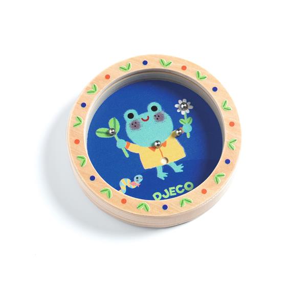 A small wooden circular patience game: the child must use their skills to place the marbles inside the holes hidden in the scene. Easy to carry, it will keep kids busy and improve their dexterity. Different illustrations available: Frog, ladybird, butterfly.