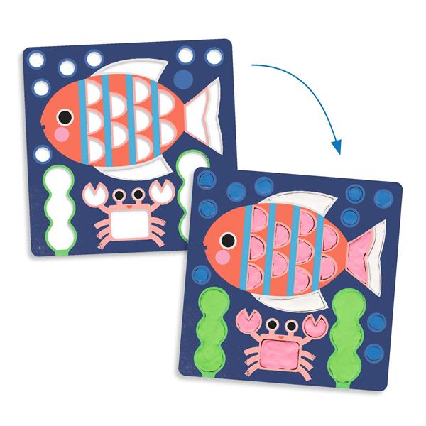 Thanks to the 4 boards with hollows and 5 tubs of air-dry modelling clay, the child simply fills each area to create lovely textured pictures. Quick to set up, mess-free and including a clear instruction booklet, this sensory activity develops fine motor skills and perception of colour... Children can create and have fun without getting messy. Content : 4 boards with hollows, 5 tubs of air-dry modelling clay and 1 booklet.
