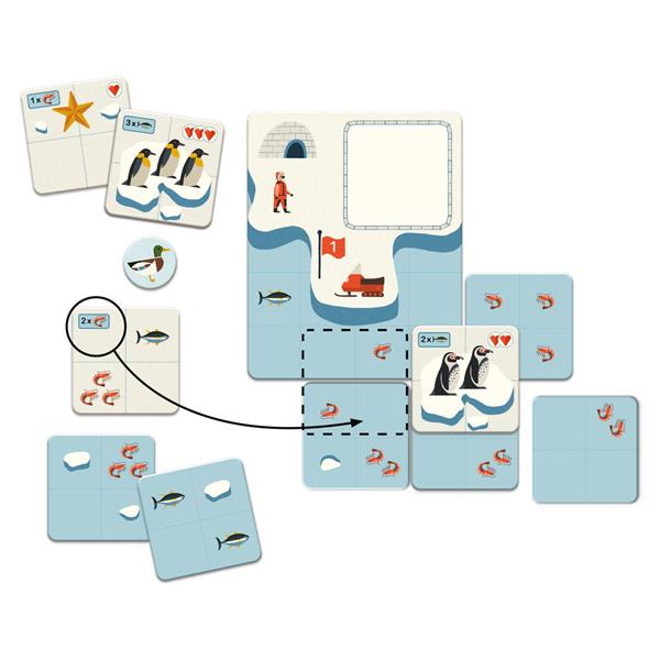 4 ‘base’ cards (10 x 12.5 cm), 72 playing cards (5 x 5 cm), 1 ‘duck’ 1st player token. Rules of the game in 10 languages.