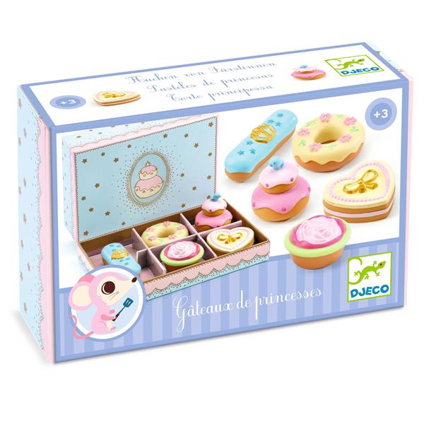 5 plastic cakes, pleasant to the touch, sold in a beautiful box decorated on the theme of princesses.