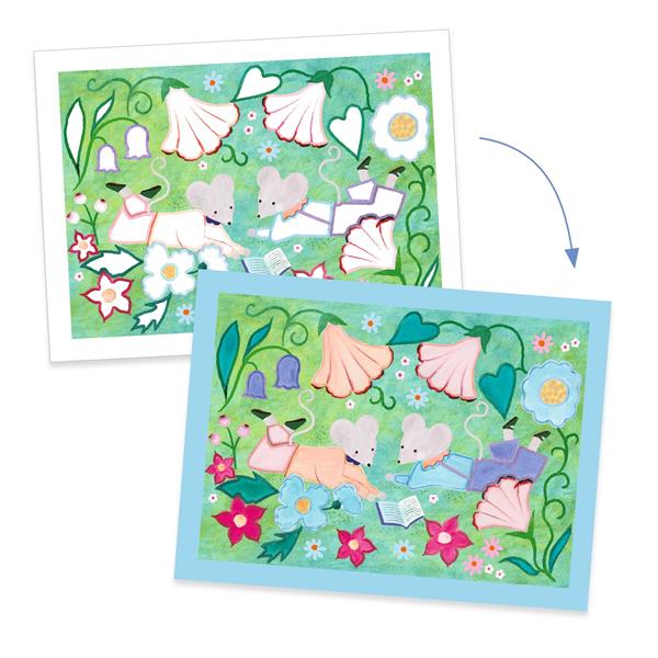 A kit to discover the joy of painting! The child has fun colouring in 4 pictures with clearly defined areas, which helps them know where to paint and achieve a gorgeous result. Thanks to the 10-colour palette and the paintbrush and frames provided, each creation is a real work of art that children will be proud to display! Content : 4 pictures to paint (21 cm x 28 cm), 4 coloured frames, 1 real palette made of plastic with 10 wells, 1 paintbrush.