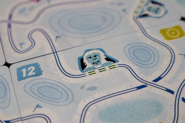 À votre tour, choisissez un itinéraire sur la rangée de cartes commune et réclamez la carte située à l'extrémité de cet itinéraire. Ajoutez cette carte à votre tableau personnel, créant ainsi un labyrinthe de pistes de ski entrelacées. À la fin du jeu, choisissez l'une des pistes de votre tableau et obtenez des points en fonction de ses caractéristiques. Les formes et les barres d'énergie vous rapportent des points, tandis que le Yéti et les arbres sont à éviter. Le joueur qui a le plus de points gagne !