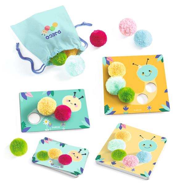Un jeu sensoriel et ludique pour retrouver les pompons perdus des chenilles ! L’enfant observe la carte-modèle et place les pompons dans le bon ordre sur le plateau, développant ainsi sa motricité fine, son sens de l’observation et du toucher. Avec 2 plateaux pour 2 niveaux de difficulté, ce jeu est facile à mettre en place.