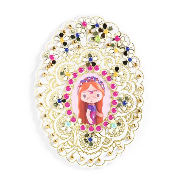 Trois médaillons en carton épais, imprimés avec un élégant estampage couleur dorée, à décorer avec gemmes, perles et mosaïques pailletées pour un effet métallisé. Inspirées par l’univers délicat des figurines Tinyly, ces activités créatives miniature signées Virginie Brachet invitent à un moment de finesse et d’évasion. Chaque médaillon, une fois décoré, devient un petit bijou raffiné, fidèle à l’esthétique précieuse de la collection Tinyly, et fait revivre Berry, Grace et Bluchka dans un loisir créatif unique.