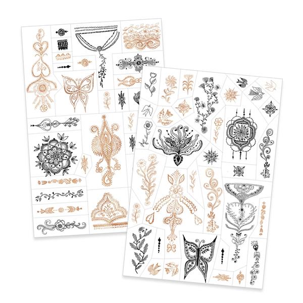 Deux planches de tatouages temporaires aux arabesques délicates et scintillantes pour orner ses mains de véritables bijoux de peau ! Faciles à utiliser, ils sont prédécoupés et s’appliquent avec un peu d’eau. Testés dermatologiquement.